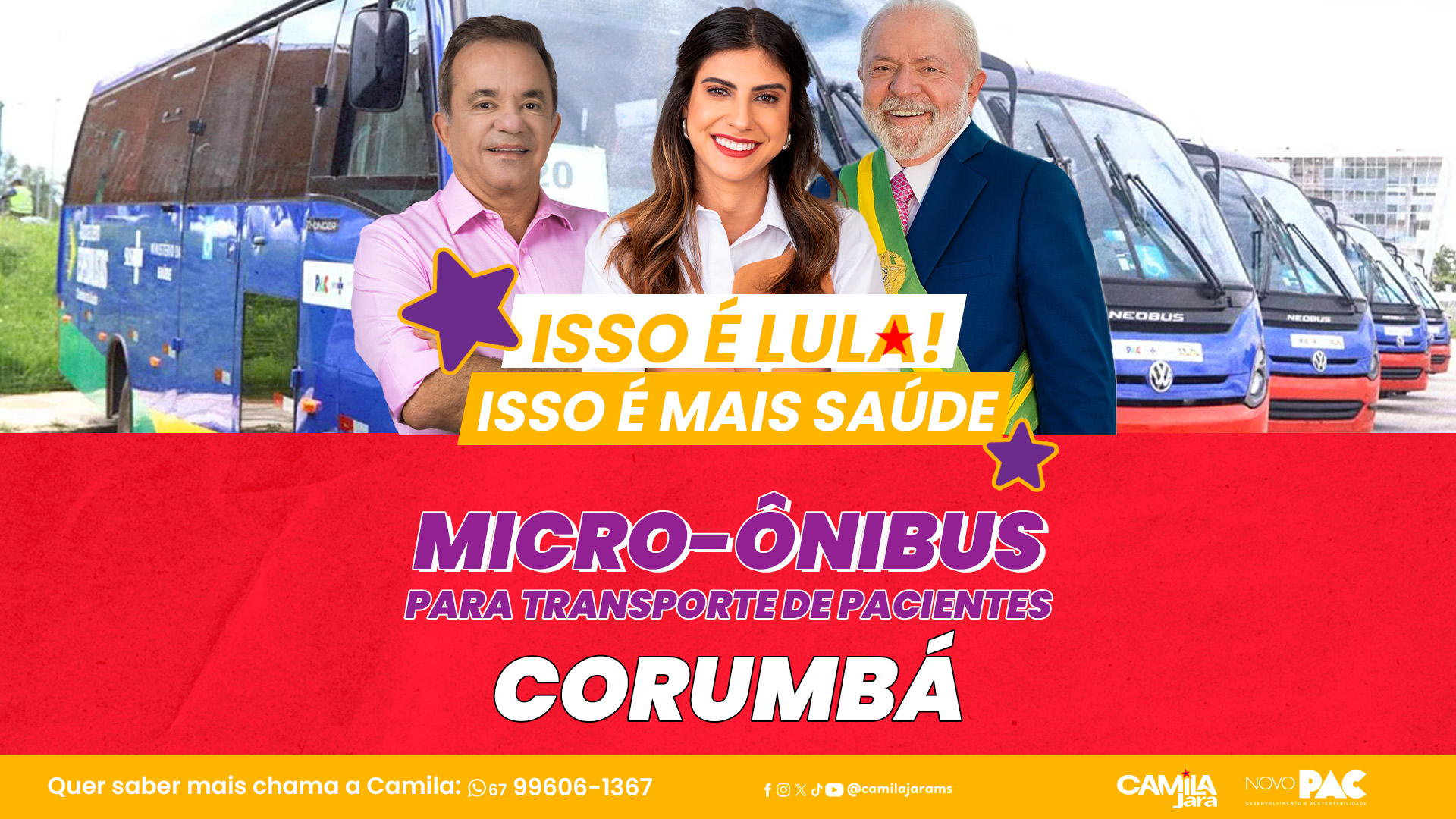 A deputada federal Camila Jara viabilizou, através de articulação junto ao Governo Federal, a entrega de um micro-ônibus ao município de Corumbá, em Mato Grosso do Sul, no âmbito do Programa de Aceleração do Crescimento (PAC).