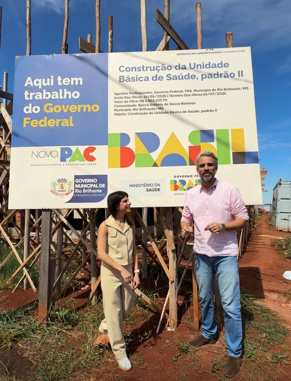 A deputada Camila Jara (PT-MS) e o professor Tiago Botelho fiscalizam as obras do governo Lula em Rio Brilhante (MS). A iniciativa serviu para verificar o andamento das construções e mostrar para a população os investimentos que estão sendo feitos no Mato Grosso do Sul pelo Governo do Brasil.